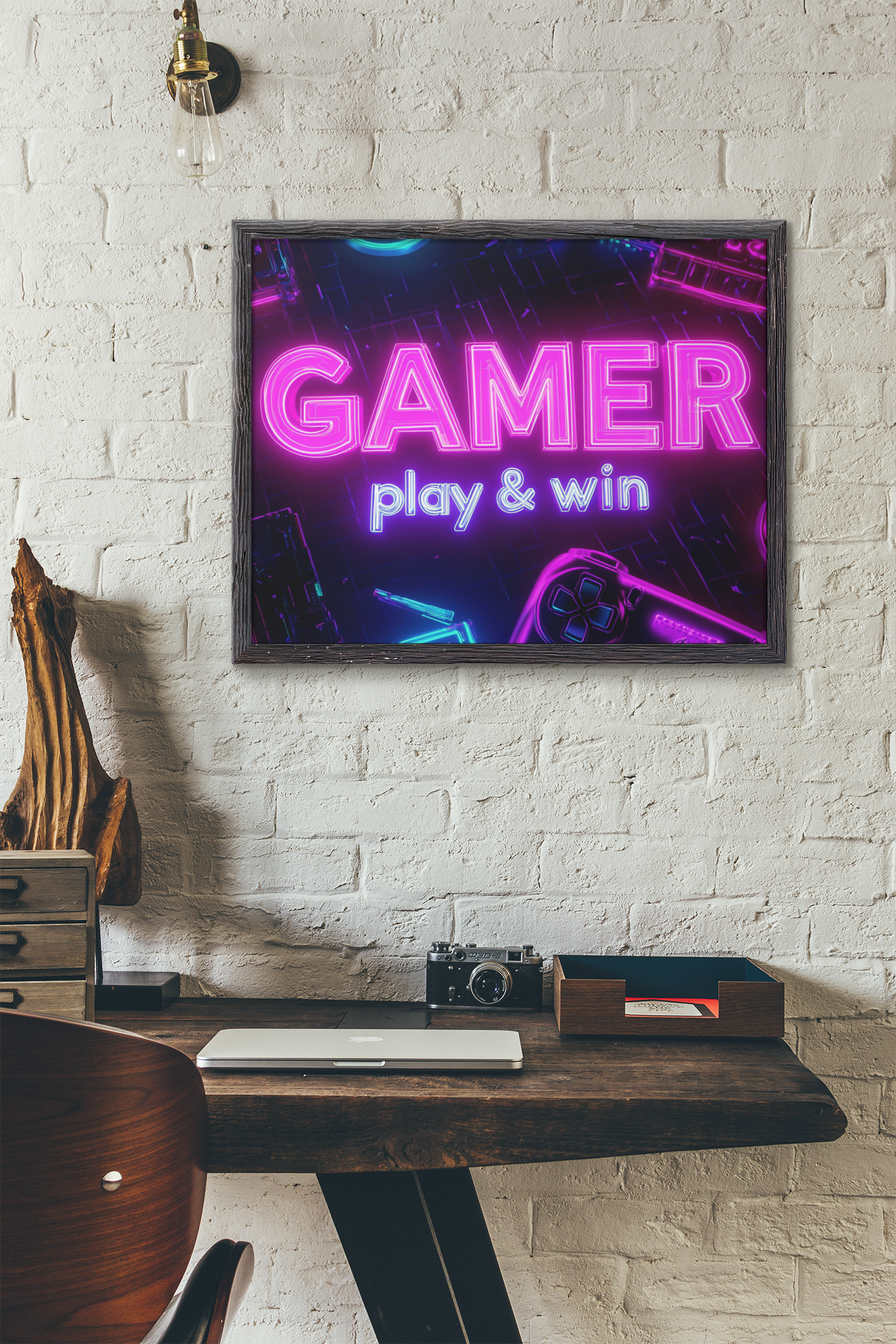 Speziell für Gaming-Enthusiasten entworfen, bringt dieser neonbeleuchtete Leinwanddruck Energie in Ihren Raum! Mit dem Slogan "Gamer: Play & Win" spiegelt er Ihre Leidenschaft für die Welt des Gamings wider und verleiht durch die leuchtenden Neonfarben einen modernen Look. Dank hochwertigem Druck und strapazierfähigem Leinwandmaterial ist es ein langlebiges und auffälliges Dekorationsstück.